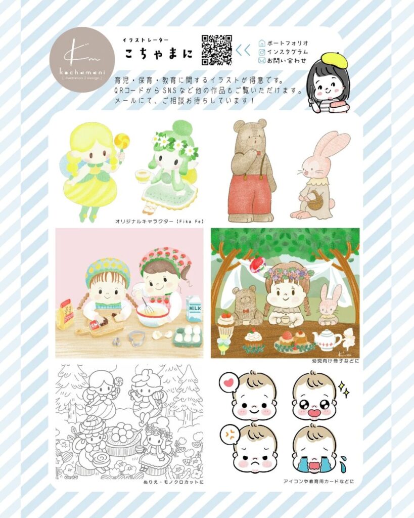12人の個性豊かな妖精たちの中から、お好きな子や花かんむりを選べます。自分だけの“フィーカの思い出”をイラストに。
